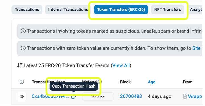 <figure><img src="https://3462301152-files.gitbook.io/~/files/v0/b/gitbook-x-prod.appspot.com/o/spaces%2Fr5skooluVCBloPz1HKkR%2Fuploads%2FBSQTTXoFekfePVprTEKN%2Fimage.png?alt=media&#x26;token=5c96eda5-382c-4211-8910-d0fc54217d8e" alt="" width="563"><figcaption><p>Copy a Tx hash</p></figcaption></figure>