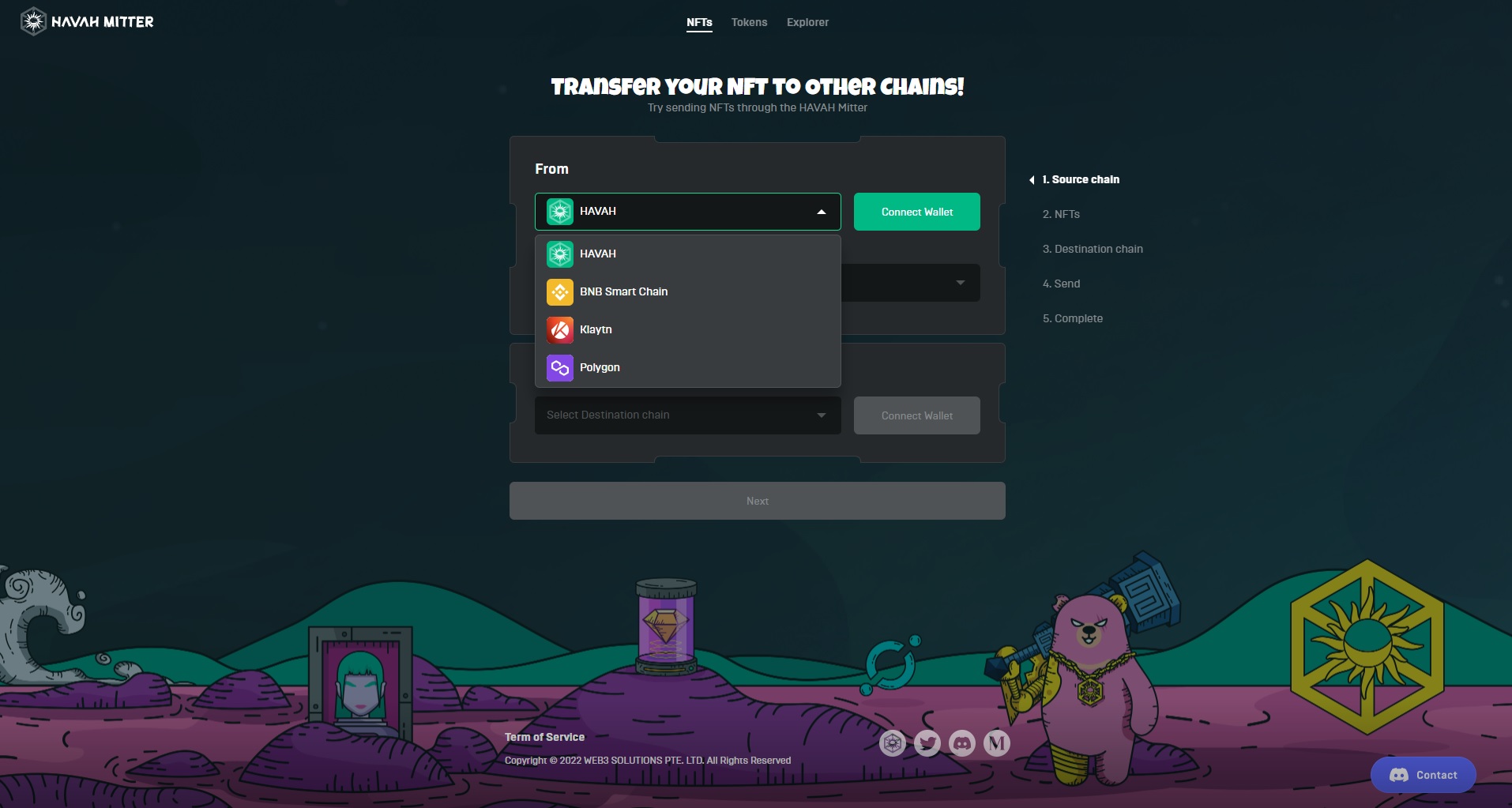 HAVAH Mitter is a bridge service that allows the safe and secure transfer of digital assets including FTs, NFTs, and SBTs across different chains.